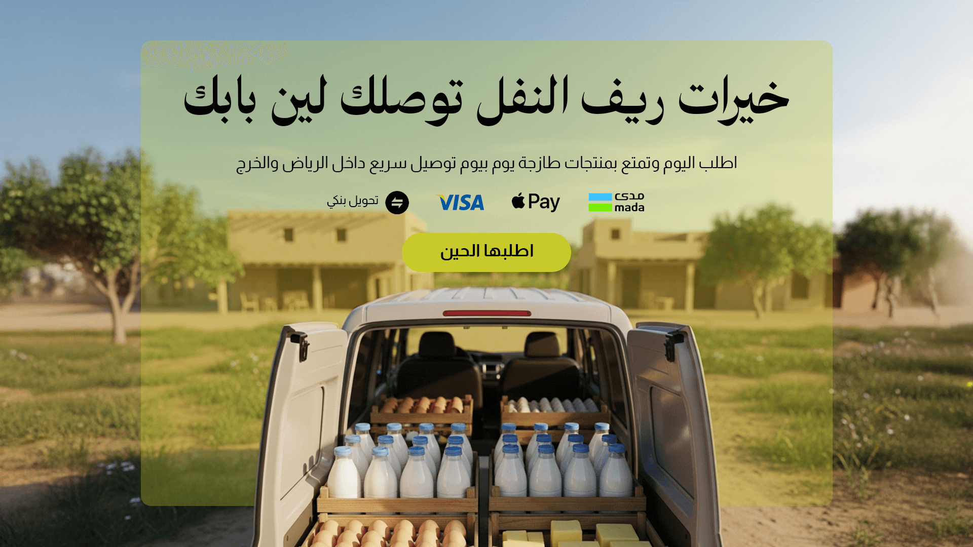 الدواجن وخيرات المزرعة فقط داخل الرياض والخرج، المنتجات الزراعية والبقوليات وأدوات الطهي لجميع أنحاء المملكة